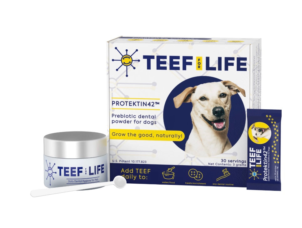 TEEF's Protektin™ formulations were invented by a microbiologist after she almost lost her new 10 year old rescue dog to a blood infection caused by dental disease.